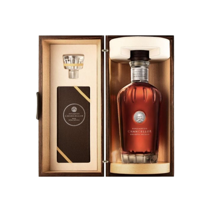 Diplomático Chancellor represents the pinnacle of Venezuelan rum masters and one of the most exclusive projects of the Diplomático brand. This premium rum with an alcohol content of 47% is created from the most complex pot stills and the oldest reserves, which have been matured in several types of oak barrels. The result is a deep and elegant distillate with an extraordinary structure. The country of origin of Venezuela gives it a characteristic fullness and tropical complexity, while the producer Diplomático confirms its reputation among the most respected rum producers in the world.